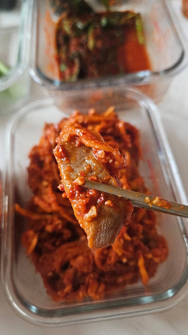 무우가 아주 얇은 채네요..팍 삭은 맛은 아니고 먹을 ...